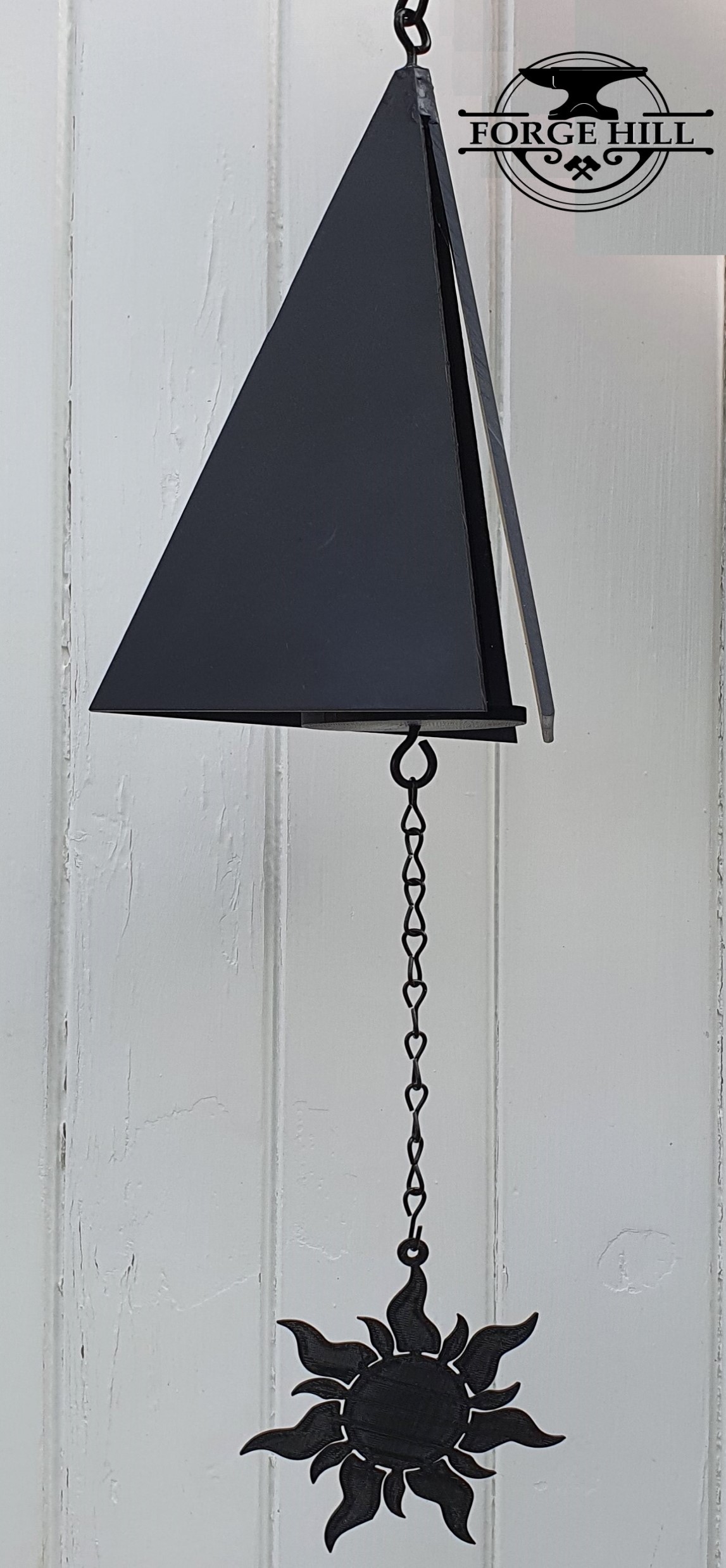 Hand crafted wind bell/chime constructed of mild steel and finished with a durable matt black coat.
